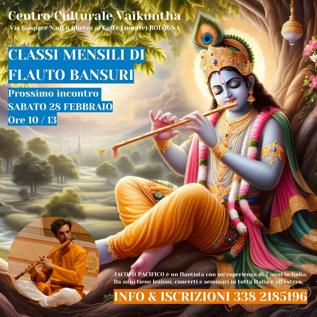 Lezioni Collettive di Flauto Bansuri & Musica Classica Indiana aperte a Tutti (Principianti/Esperti) e a Cantanti e Musicisti di Altri Generi Musicali.Il Bansuri è il flauto per eccellenza della tradizione musicale indiana. L’apprendimento segue la tradizione orale, dove il maestro suona e l’allievo ripete. In questo modo si imparano varie tecniche, uno stile, un repertorio e l’abilità di improvvisare. La musica indiana è devozionale per natura e il Bansuri, col suo suono vellutato e magico, sembra fatto per incantare e per entrare in profonda connessione con se stessi.
