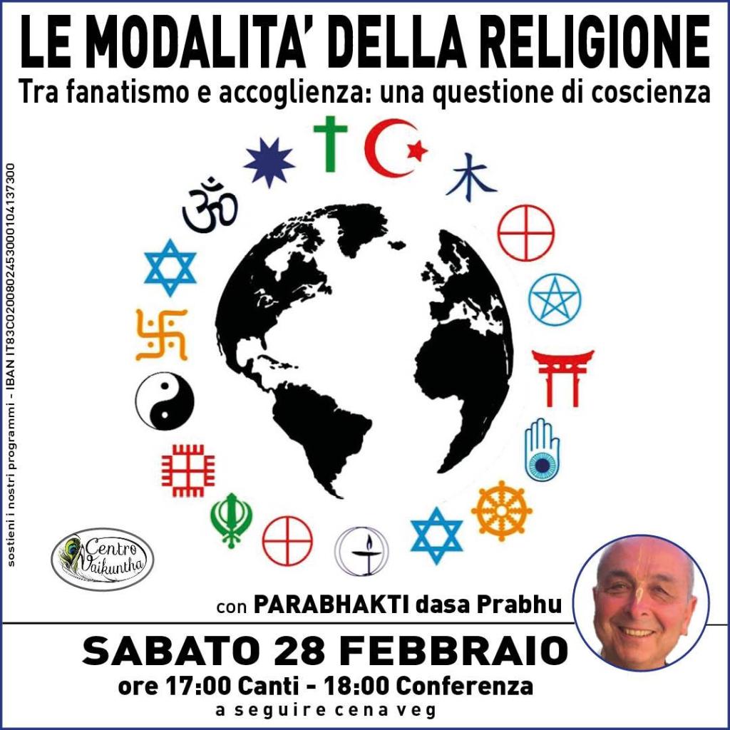 Sabato 28 febbraio presso il Centro Culturale Vaikuntha si terrà la conferenza dal titolo: “Le Modalità della Religione – Tra fanatismo e accoglienza: una questione di coscienza” con Parabhakti dasa Prabhu (Mauro Bombieri).Note sul relatore: Parabhakti dasa (Mauro Bombieri) è un viaggiatore e conferenziere internazionale, ha incontrato genti e culture molto diverse, che hanno contribuito ad arricchire la sua visione globale del mondo e della spiritualità. Copre diverse cariche tra cui è il presidente di Villa Vrindavana in Toscana e il responsabile delle comunicazioni di ISKCON Italia.